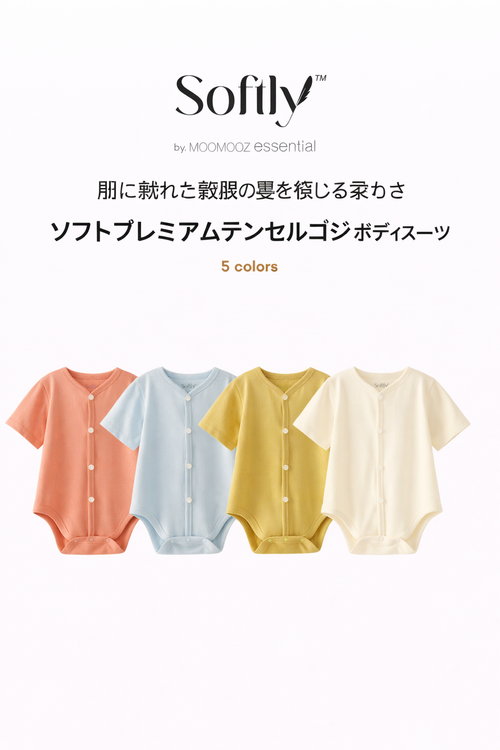[Baby] (Softly)プレミアムテンセル リブストレッチ 半袖ボディスーツ